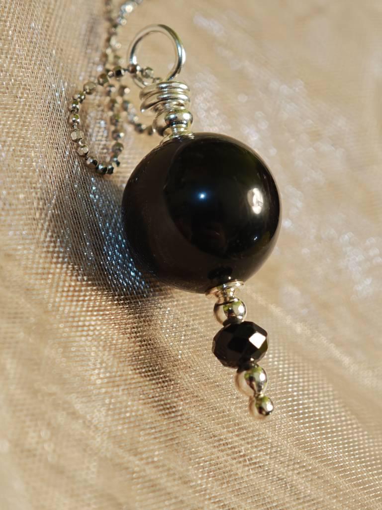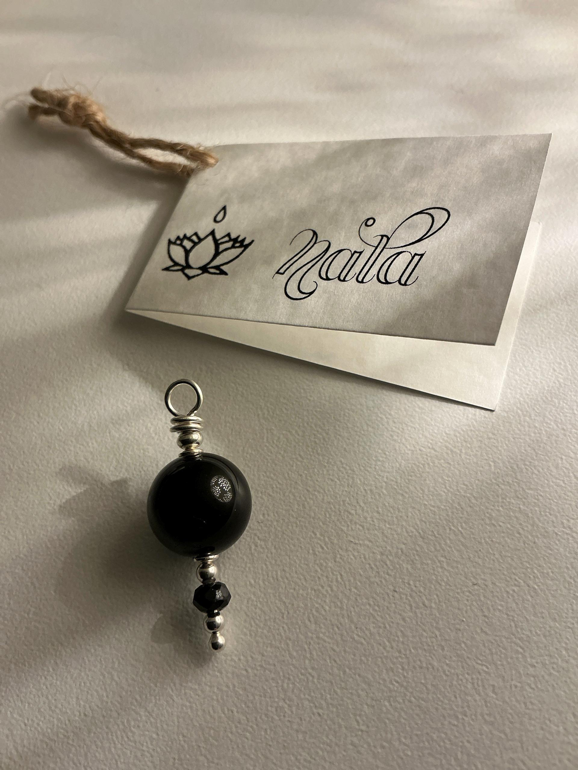 Simple, timeless necklace pendant consisting of 1 ball made of black tourmaline, also called schorl, a small faceted button made of schorl and elements made of silver (sterling, 925), which are carefully wound by hand on silver wire.